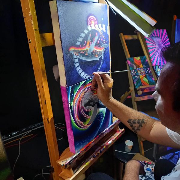 is a Dreamweaver with a paintbrush, crafting whimsical worlds where whales drift lazily across endless skies. His work bursts with epic dimensional shapes, intricate line work, and a hypnotic, trippy flow that carries you into another dimension.